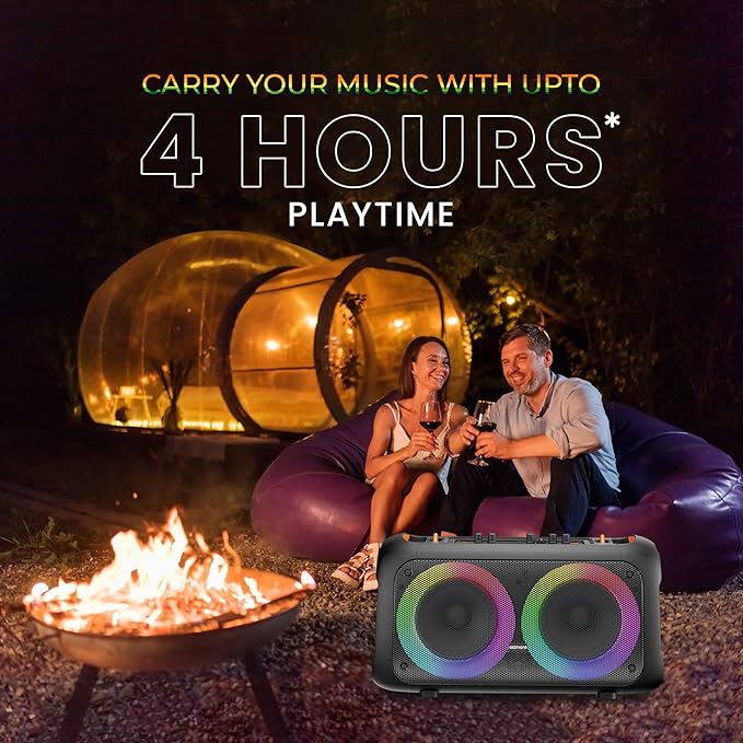 - ✅ Playtime of Up to 4 hours: The speaker delivers a total playback time of up to 4 hours. Take parties to the next level with a non-stop playback of up to 4 hours.