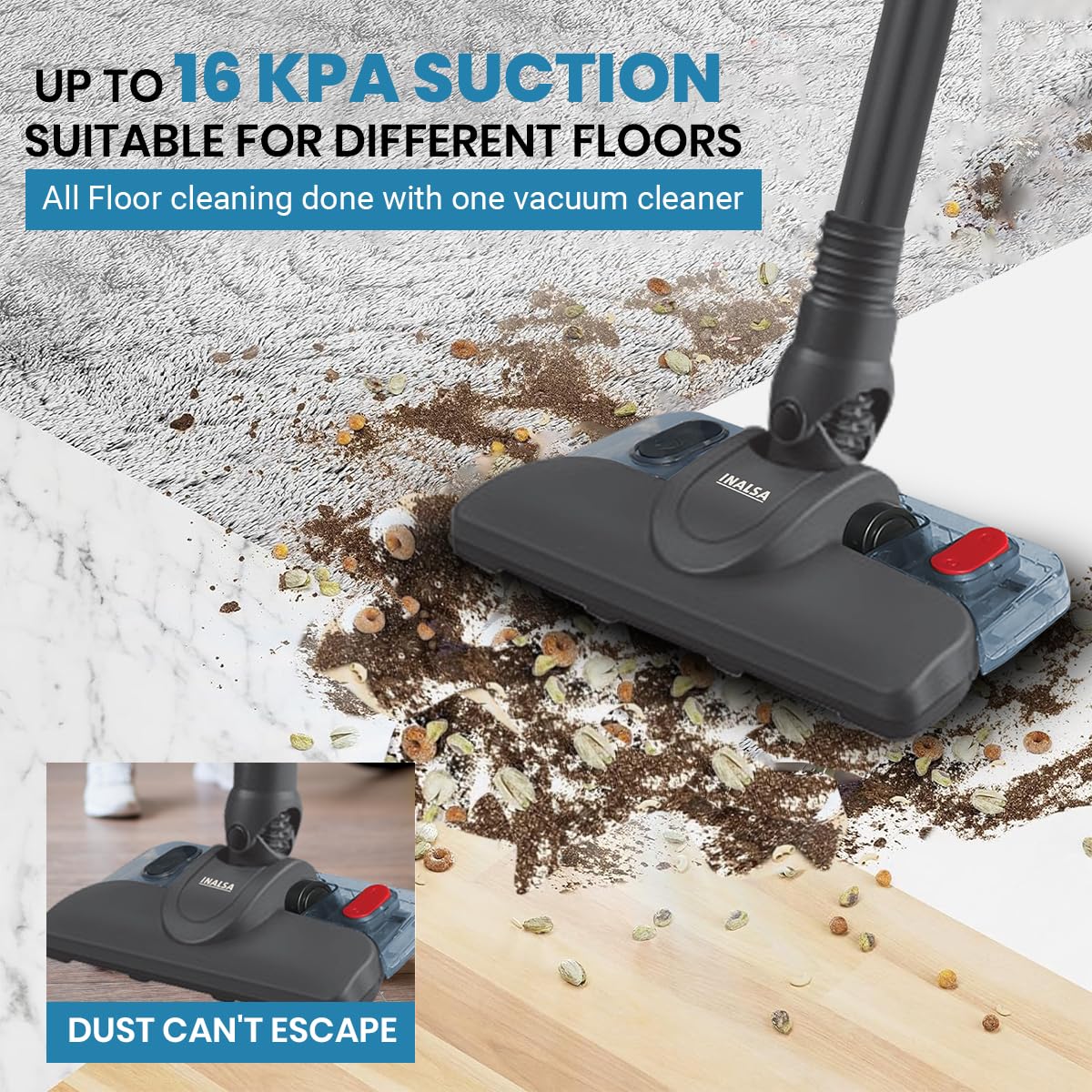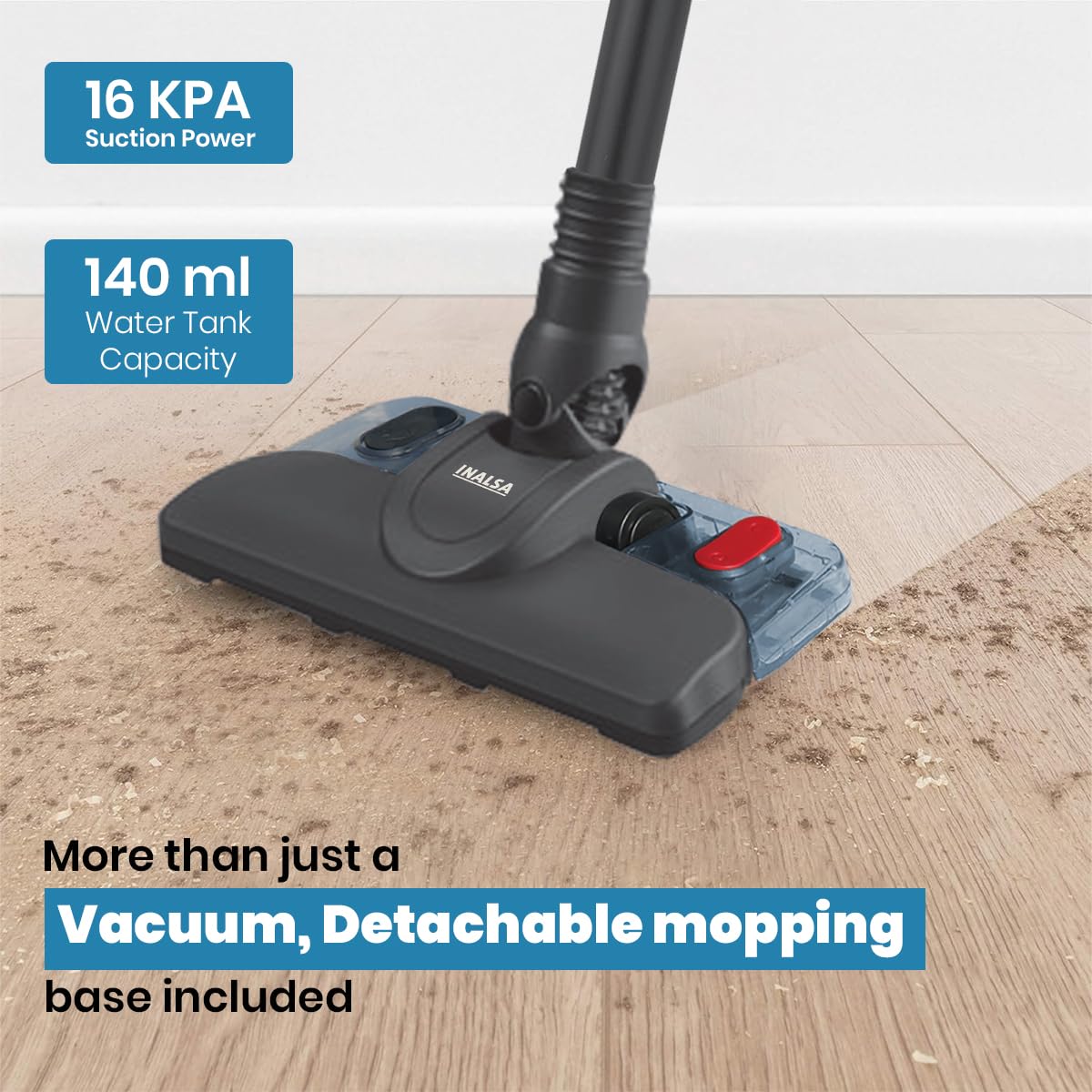 Inalsa Vacuum Cleaner with Mop for Floor Cleaning| 800 W Motor with Strong 16 KPA Suction|Electric Mop for Floor Cleaning|5 Level Efficient Filtration|Handheld Vacuum Cleaner for Home (Ozoy Mop Plus)