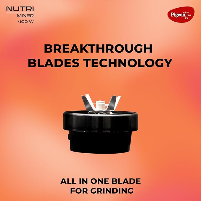 - Pigeon Nutri Mixer, Mixing,Juicing, Blending & Grinding System | Powerful 400W 18000 RPM motor | Stainless steel Blades | 2 unbreakable jars | 2 Storage Lids | 1 Strainer Lid | 1 Socket