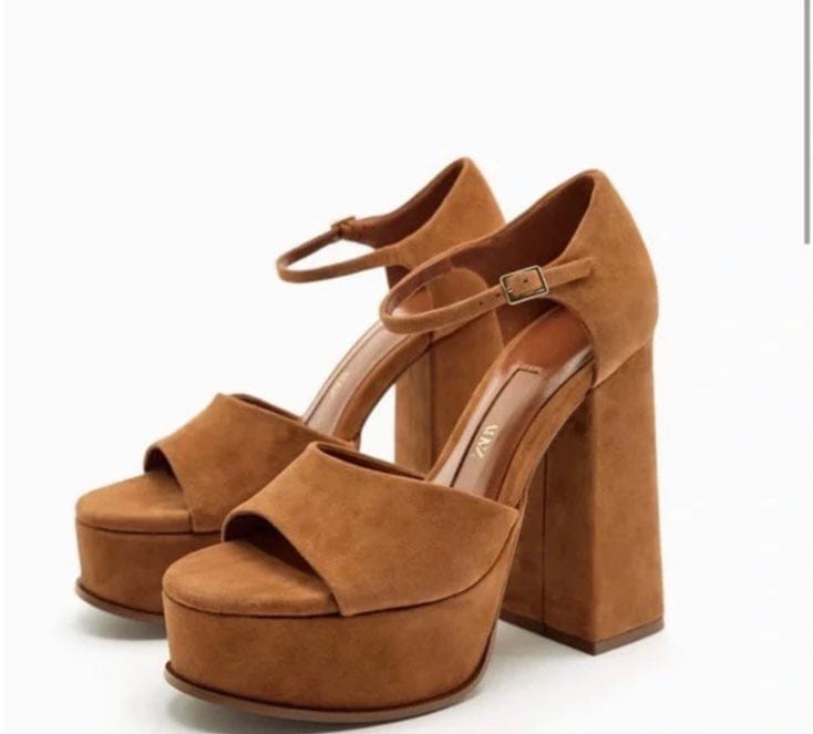 Step into bold sophistication with the ZARA Chunky Suede Platform Sandals in rich brown. Crafted with premium faux suede for a soft, velvety touch, these sandals feature a wide front strap and an adjustable ankle buckle for a secure, stylish fit. The standout chunky block heel and elevated platform offer both height and stability, making them perfect for long wear without sacrificing comfort.