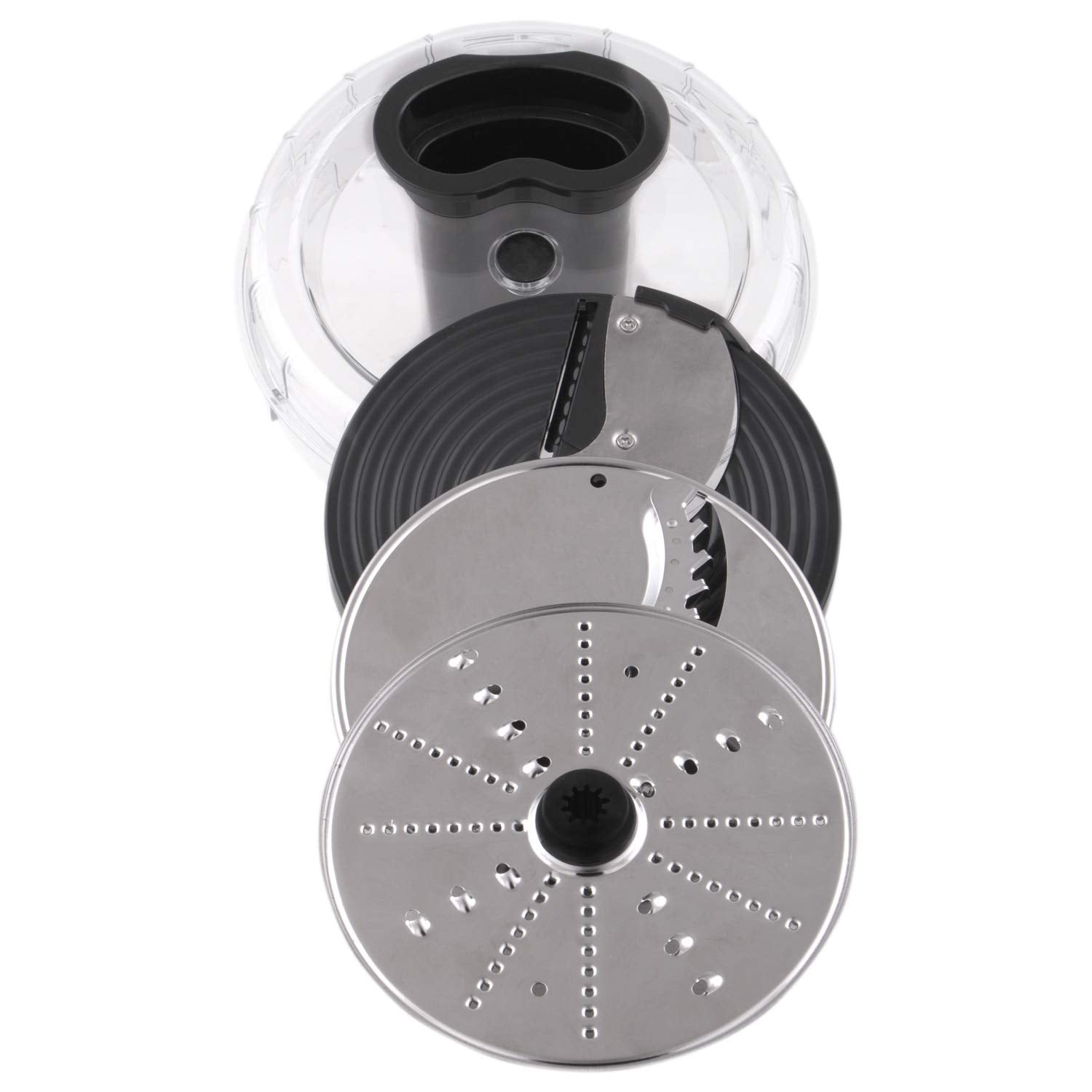 This food processor comes with 6 different types of blades for performing multiple functions. One of these blades includes a 7-step stainless steel disc blade for, slicing, shredding, grating, and chopping vegetables in 7 different sizes of thickness.