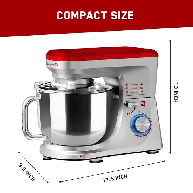 - INALSA Stand Mixer Professional Esperto-1400W | 100% Pure Copper Motor| 6L SS Bowl| Includes Whisking Cone, Mixing Beater & Dough Hook (Silver/Red)