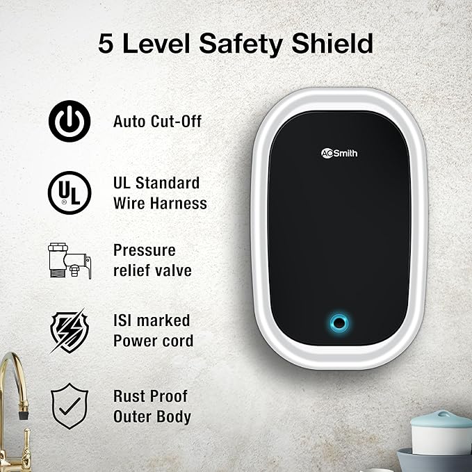 - ADVANCED SAFETY FEATURES FOR YOUR FAMILY: Stay protected with our electric geyser featuring a 5-level safety shield. From overheating control to a rust-proof body, this instant water heater for bathroom guarantees total peace of mind for you and your loved ones.