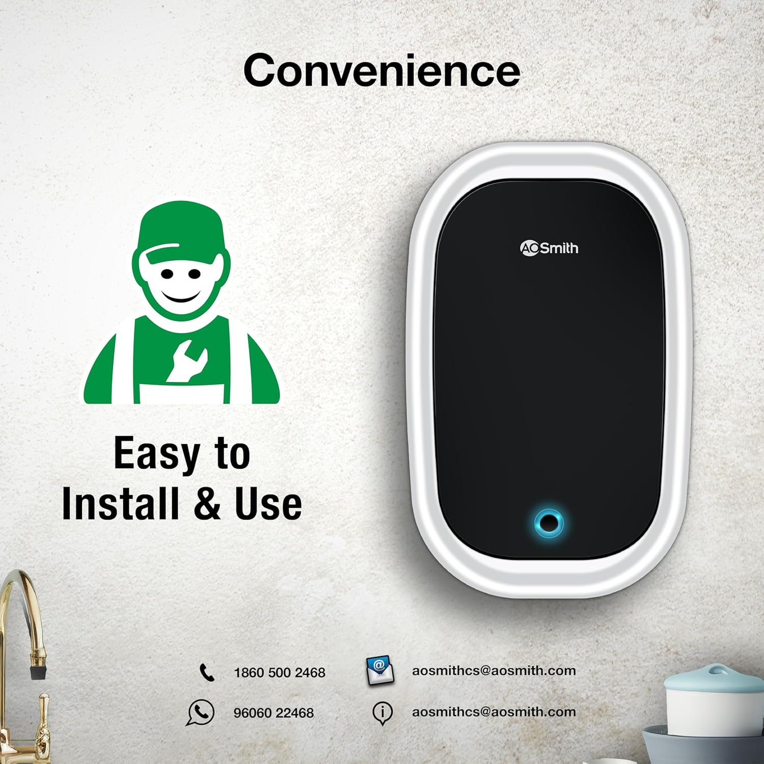 - PAN-INDIA SERVICE FOR HASSLE-FREE SUPPORT: Enjoy peace of mind with our extensive PAN INDIA SERVICE NETWORK: Whether you use this heater for bathroom or kitchen, professional support for your instant water geyser is always just a call away.