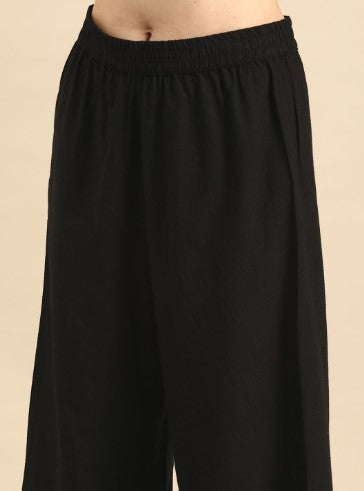 - Anouk Women Black Striped Pure Cotton Kurta with Palazzos (Size-XL)