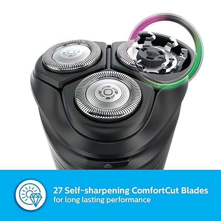 Comfortable and clean shave Philips AquaTouch shaver 3000 gives you a convenient and comfortable wet or dry shave. With 5D Pivot & Flex heads, ComfortCut blade system, and 55 minutes of shaving A comfortable shave 1. 5D Pivot & Flex Heads follow curves for a comfortable shave 2. ComfortCut Blades engineered to glide smoothly over skin Get the most of your shaver 1. Pop-up trimmer for mustache and sideburns AquaTouch 1. Aquatec for a refreshing wet or convenient dry shave 2. Skin Protection System allows smooth gliding to protect skin 3. 27 self-sharpening blades ensure a consistent, clean shave Easy to use 1. One-touch open for easy cleaning 2. 1-level battery indicator to get the best from the shaver 3. 55 minutes of cordless shaving from a 1-hour charge 4. 5-minute quick charge gives enough power for 1 full shave 5. Rubber grip for comfortable anti-slip handling