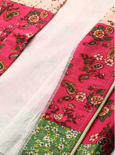 Floral printed tailored jacket, has a hooded, has a zip closure, long sleeves, straight hemline, cotton lining